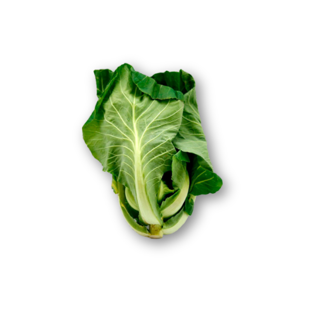 • Couve verde fresca com textura natural e nervuras claras sobre fundo branco